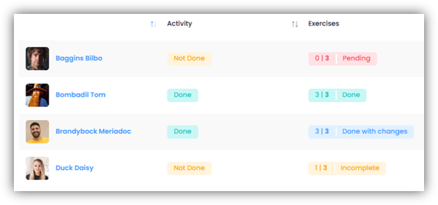 Here you have a list of your athletes. In the column “Exercises” you can see which athletes have already given feedback on your exercises.