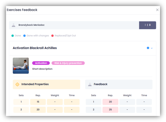 - “Done with changes” means that the athlete has marked all the exercises as completed, but has changed your predefined properties.