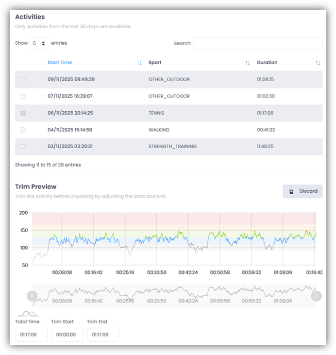 Once you have activated automatic import, you don’t need to do anything else. The activities are automatically added to your calendar and your heart rate data and calculated “Total Trimp” are available in the corresponding activity in the “Heart Rate” tab.