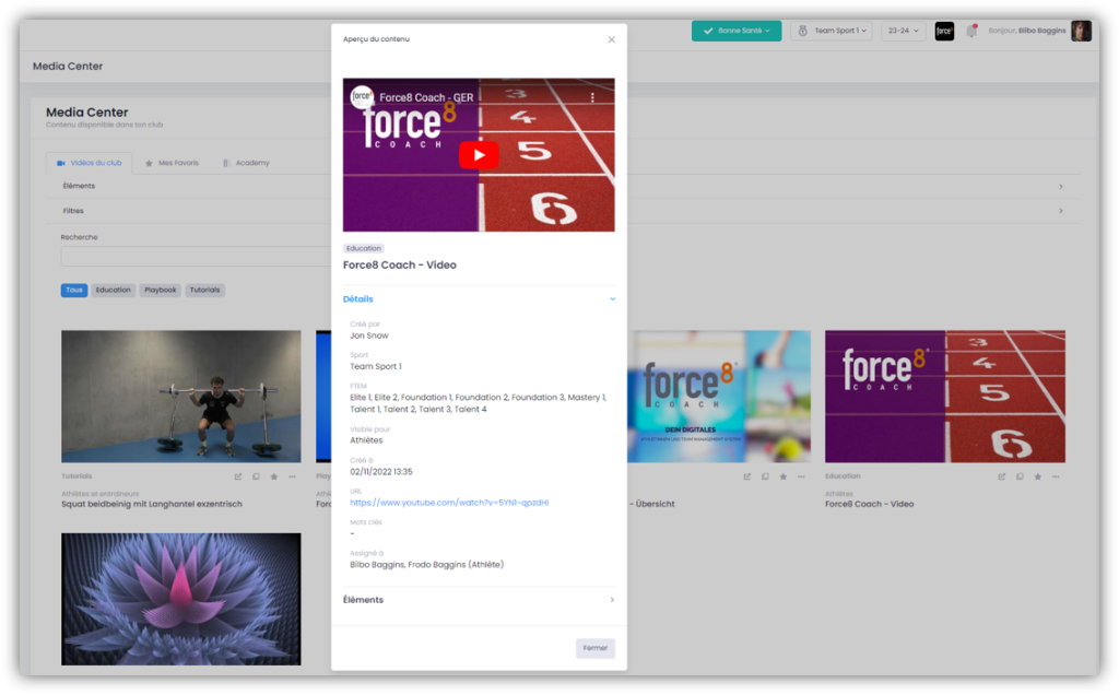 Dans l’onglet «Academy» apparaissent des vidéos que ta fédération met à la disposition de tous les clubs. L’ academy ne s’affiche que si des vidéos sont également mises à disposition.