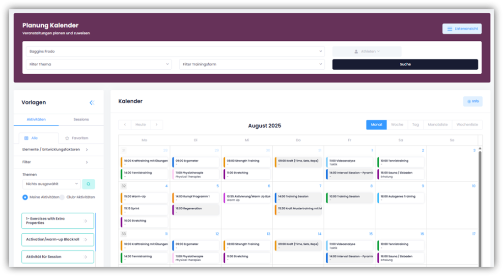 Die Trainingsplanung für Deine einzelnen Athleten oder Gruppen, machst Du unter TRAINING – PLANUNG.